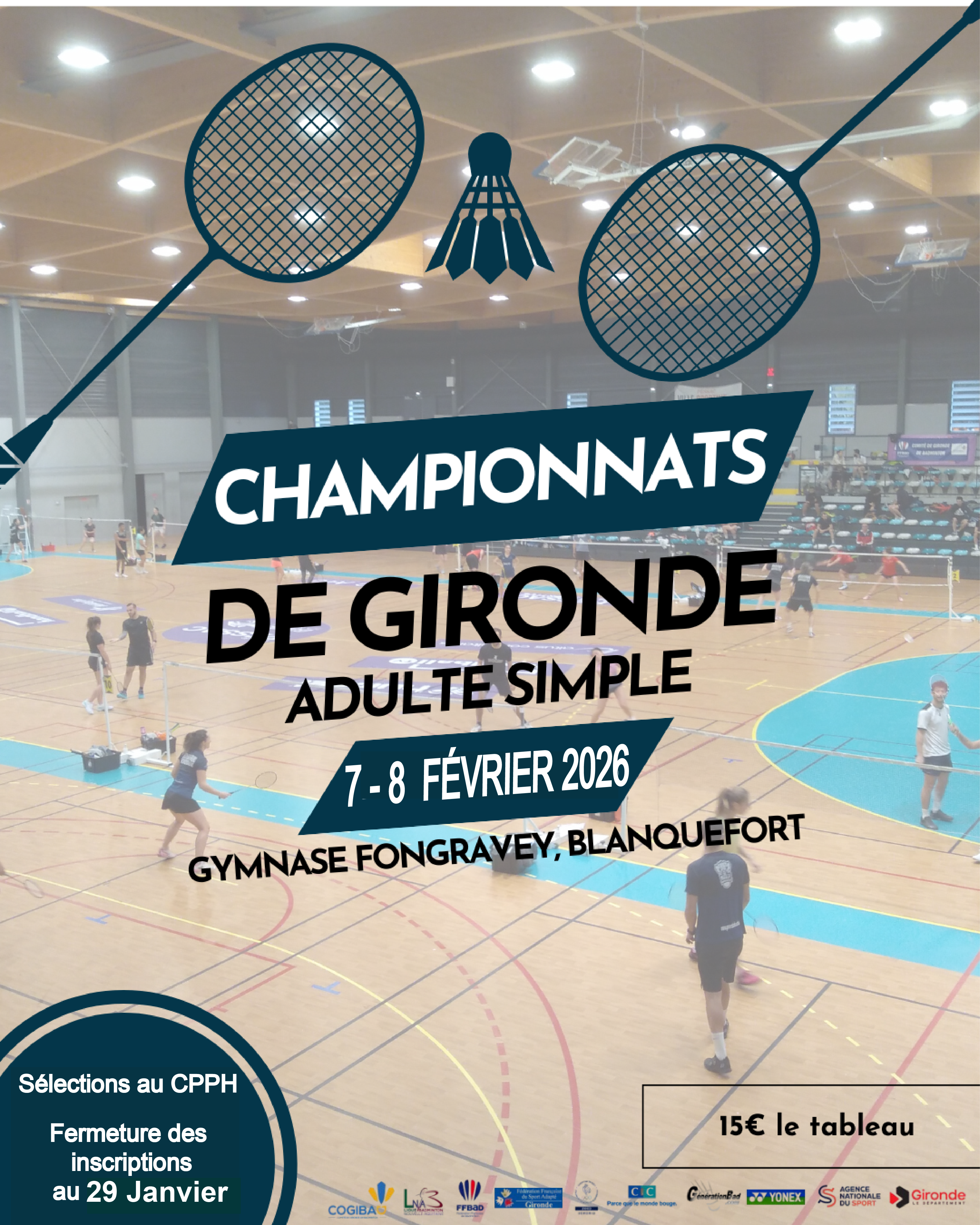 N'oubliez pas d'envoyer un justificatif à la ligue Nouvelle-Aquitaine ainsi qu'au Comité de Gironde de Badminton sur Cette adresse e-mail est protégée contre les robots spammeurs. Vous devez activer le JavaScript pour la visualiser. et Cette adresse e-mail est protégée contre les robots spammeurs. Vous devez activer le JavaScript pour la visualiser..